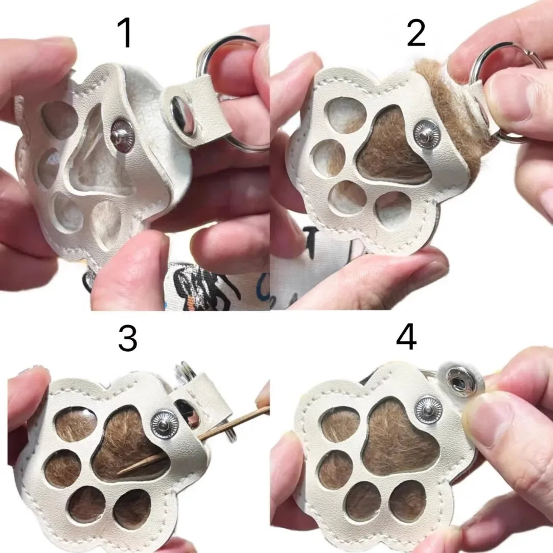ModoHome™ Pet Hair Memorial Keychain – PU Leather Keepsake Paw Locket
